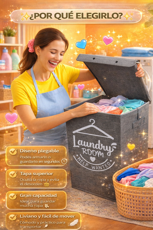 💡 El Cesto Plegable para Ropa con Tapa es la solución simple para mantener todo organizado.