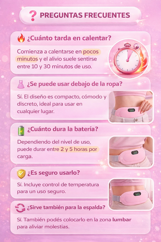 El cinturón utiliza calor terapéutico y vibración para ayudar a aliviar los cólicos menstruales.